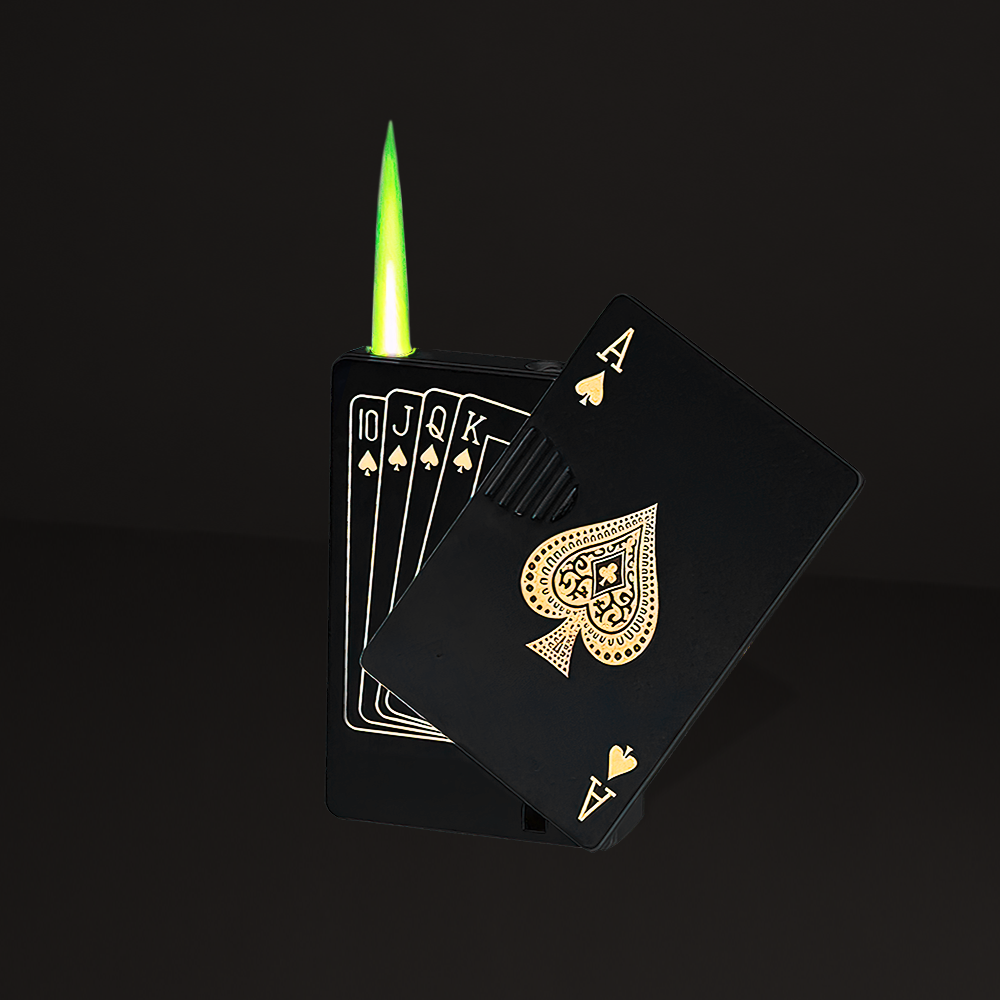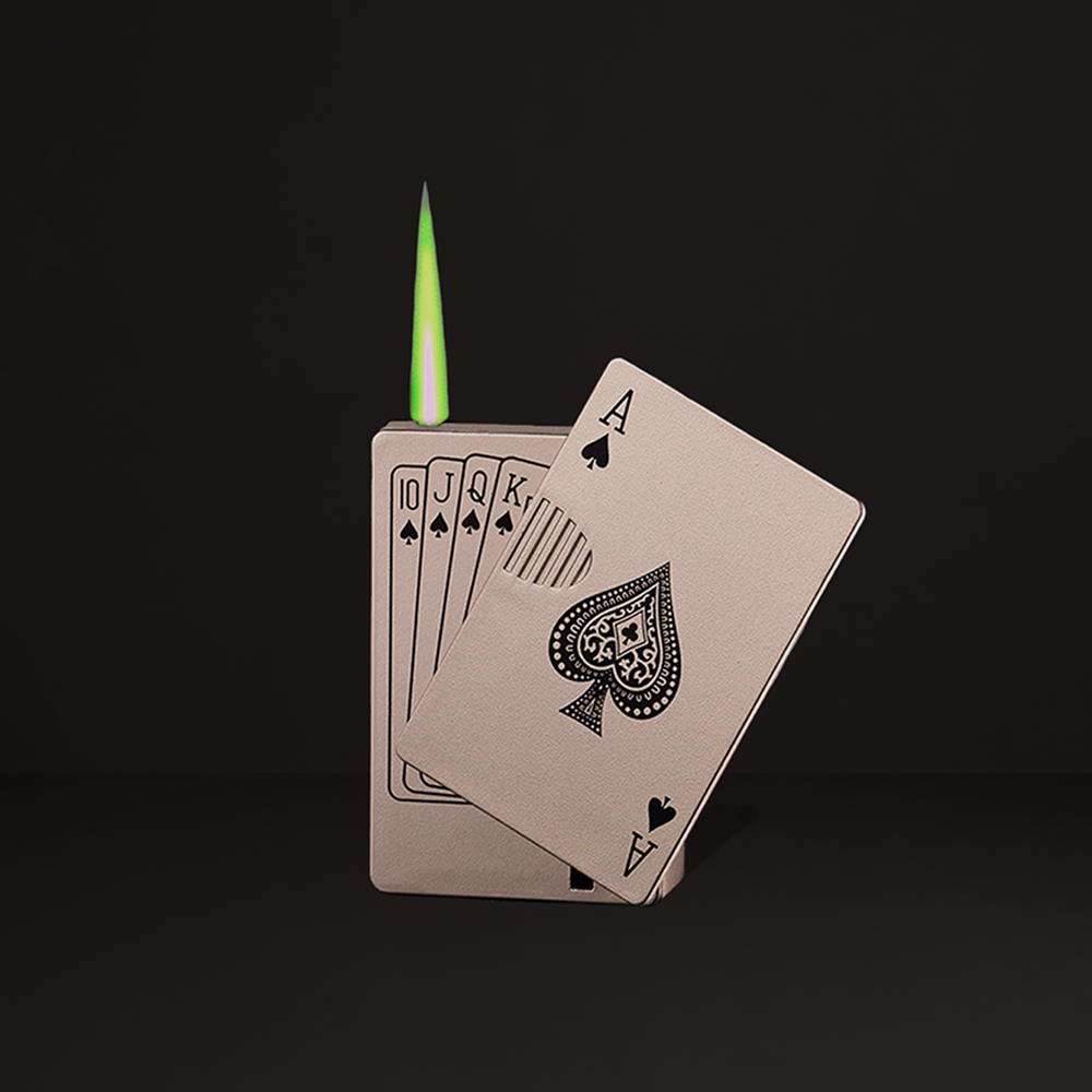 A powerful green torch lighter in the form of a deck of cards with a luxurious metallic finish. Just swipe the front card to the right to release the green torch flame!